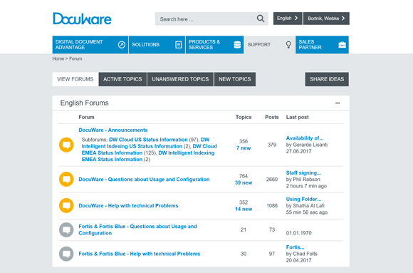 DocuWare‘s Support Forum provides a platform for customers and Partners to interact with other users and administrators, to both ask questions and...