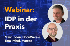 Neugierig geworden? Dann melden Sie sich jetzt zum dritten Webinar „DocuWare IDP: Smarte Dokumentenprozesse leicht gemacht“ an und erfahren Sie, wie sich DocuWare IDP auch in Ihrem Unternehmen sinnvoll und gewinnbringend integrieren lässt.
