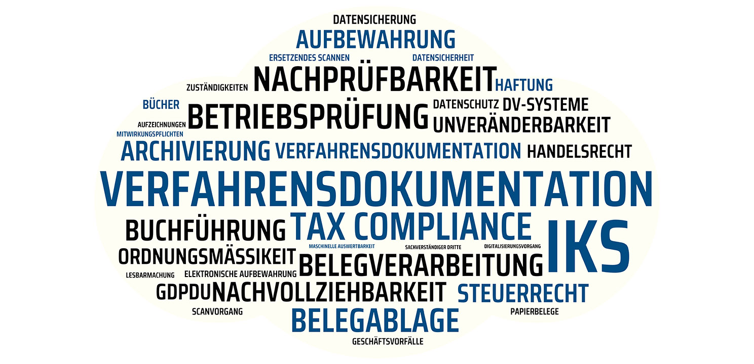 Darüber hinaus ist auch das Ordnungssystem zu definieren sowie der Ort der Aufbewahrung zu nennen (Archivraum, abgeschlossener Schrank, Server, Rechenzentrum, Cloud). In die Verfahrensdokumentation Buchhaltung gehört außerdem die Beschreibung, wie dieser Ablageort vor Zugriffen Unbefugter und vor Verlust geschützt ist. Es muss dokumentiert werden, wie, wann, wie oft und auf welchem Medium die dort abgelegten Dokumente gesichert werden und wie dafür gesorgt wird, dass die Dokumente nicht vor Ablauf der Aufbewahrungsfrist vernichtet werden. Länger als erlaubt sollten sie jedoch auch nicht archiviert sein.