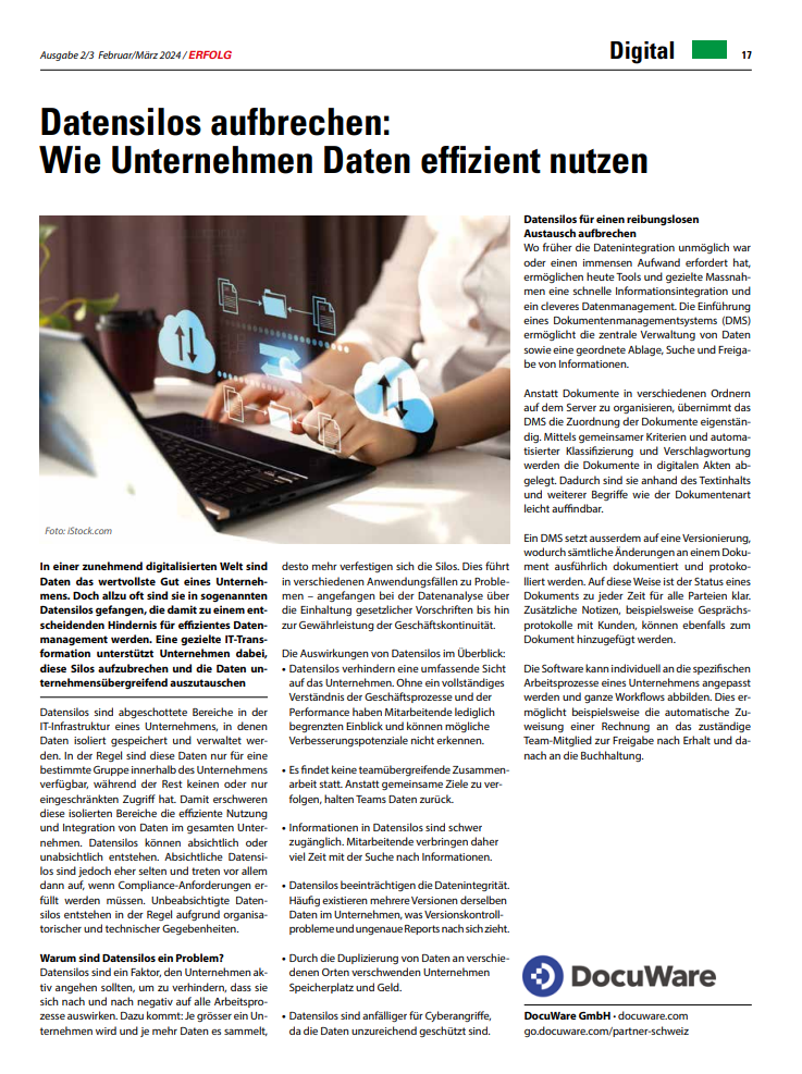 Die vorkonfigurierten Cloud-Lösungen von DocuWare lassen sich auch problemlos in bestehende IT-Anwendungen integrieren, etwa Sage, Outlook, Addison, DATEV, SAP und viele mehr.