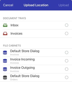 DocuWare Mobile: Archivador como destino de almacenamiento con la función de compartir.