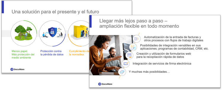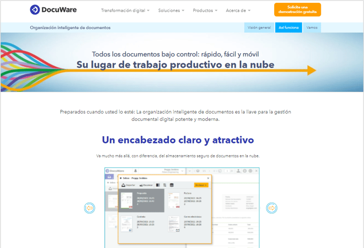 DocuWare para la organización inteligente de documentos ofrece a las empresas la posibilidad de conseguir de forma inmediata una oficina libre de papel y se adapta perfectamente a sus seminarios web y demostraciones en vivo sobre la digitalización rápida.