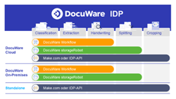 DocuWare IDP no solo integra la automatización completa de los procesos documentales en una plataforma de gestión documental uniforme, sino que también se ofrece, como solución independiente (Standalone), es decir, sin sistema DocuWare conectado, un registro de datos y una clasificación de documentos de alta precisión como complemento flexible a los sistemas existentes.