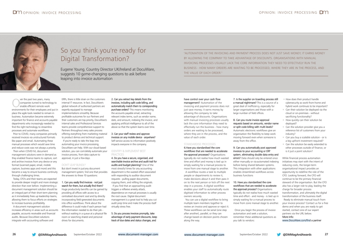 Accounts payable (AP) is an area where cloud-based applications such as DocuWare Kinetic Solution for Invoice Processing can provide a quick win - CFO explores how and why.